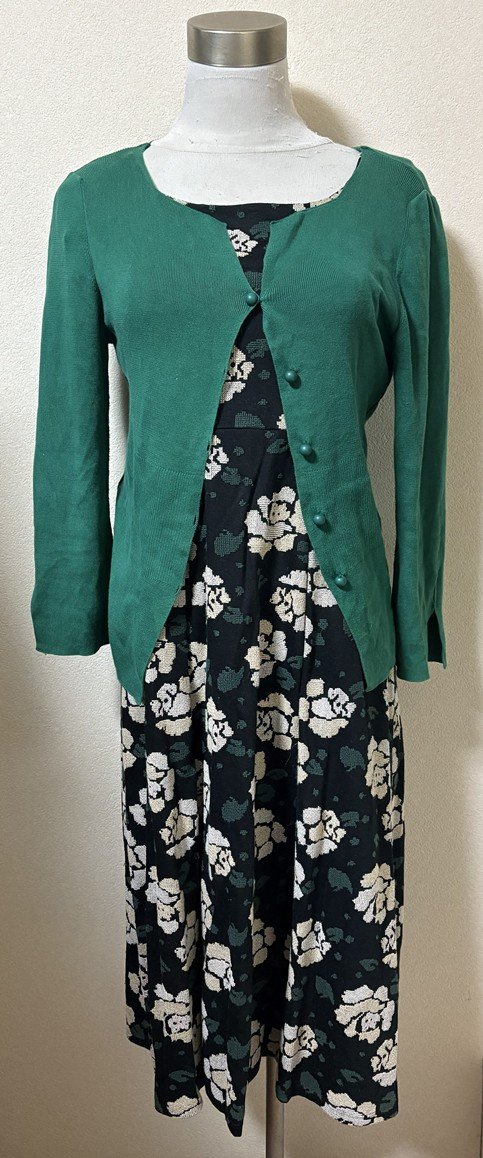 その日着ていたシビラのワンピースです。白薔薇刺繍胸下切替黒半袖ワンピースとグリーン系さらっとレトロ風カーディガンにコーディネートを追加しました。