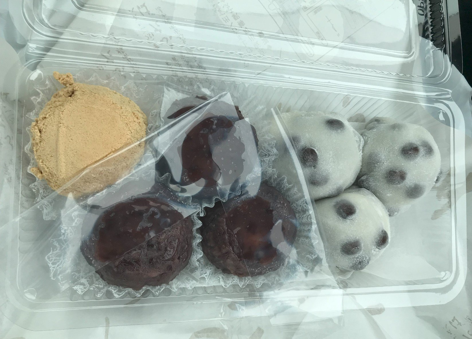 並んでいるときに、頂いた饅頭がわかったよ!「豆餅」だ!30分弱で購入でき、いろいろ買っちゃったよ。