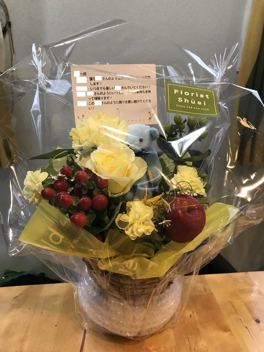 連れ合いが最後の出勤から帰ってくる。会社からいただいたお花のメッセージを見て、苦笑。まさしく、外ヅラの良さが出てる。
