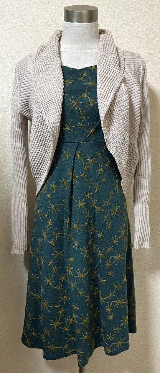 2013~2015年頃の商品だと思います。伊勢丹限定の赤タグの商品です。グリーン色の羽織で、いろんなワンピースと合わせやすいし、すごく温かいです。すごく羽織りやすくて良いんですが、ただし、ワンピースにモヘヤの糸がくっついてしまうので、それを取るのがめんどくさいのが難点です。モヘヤなので、仕方ないんですがね、、、。毛64%、ナイロン36%。定価29,000円(税別)です。